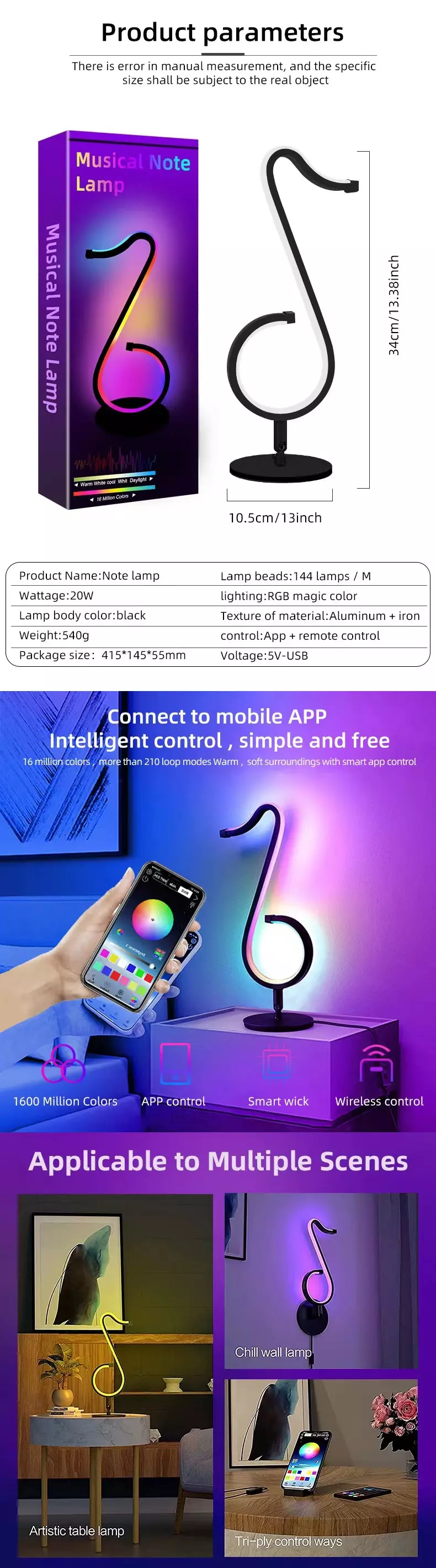 There is a new RGB colorful Music Note Lamp with Bluetooth APP control, 12.9$/kit, color box packing.