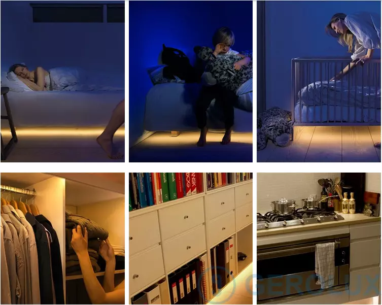 1.12V Power Adapter 1 pcs 2.Body induction And Light induction Sensor 2 pcs 3.1.2m LED strip 2 pcs 4. Deconcentrator |