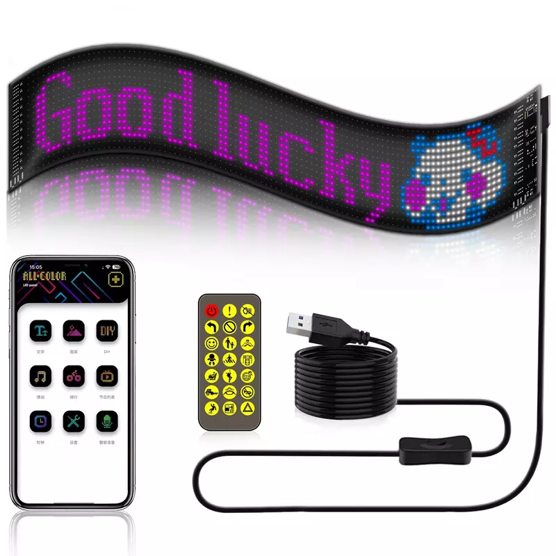 16*96 Pixel=1536 Lights Product size :12*59.5cm Product inches:23.42x4.72in power:5V2A 10W 4.5m USB cable Colorful effect APP control with remote control Wireless Bluetooth connection Material:PU+FPCB IP65 waterproof
